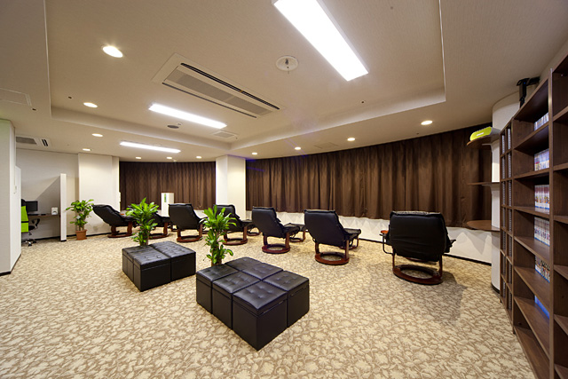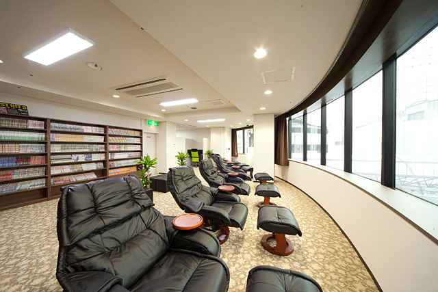 仮眠がとれる他、時間にとらわれずスピーカー内臓のリクライニングシートでお好きなTV番組をゆっくりとご覧頂けます。新聞・雑誌・漫画も揃えておりますので、充実した一人の時間をお過ごし下さい。 |